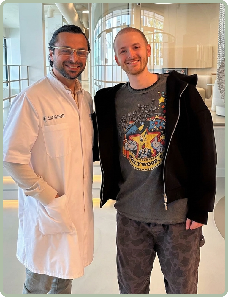 Voor jonge cliënten, die zich vaak nog in de actieve fase van erfelijke haaruitval bevinden, hanteren wij een speciaal FUE-CT-protocol. Dit is gericht op het verantwoord behandelen van een zo groot mogelijk oppervlak in één sessie, waarbij het donorgebied optimaal wordt gespaard en het herstel wordt ondersteund met gepersonaliseerde nazorg met unieke CTS-injecties en CT-supplementen. Hiermee vergroten we de kans op een stabiel resultaat, afgestemd op de toekomstige haarontwikkeling.
