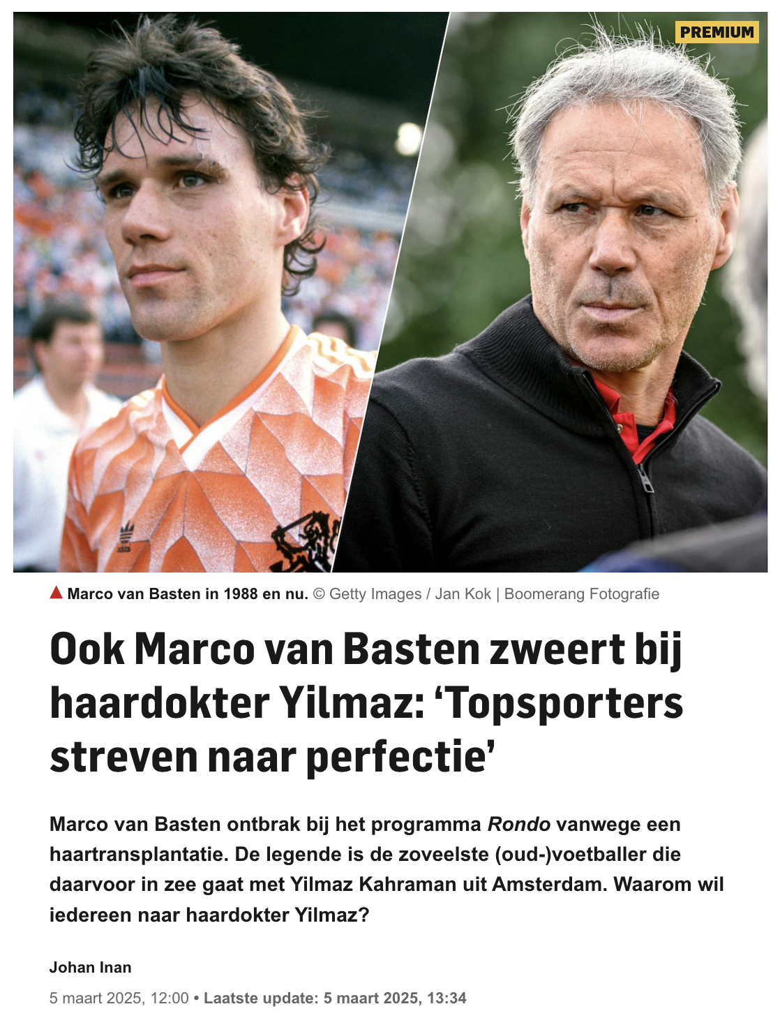 Artikel AD over de haartransplantatie van Marco van Basten